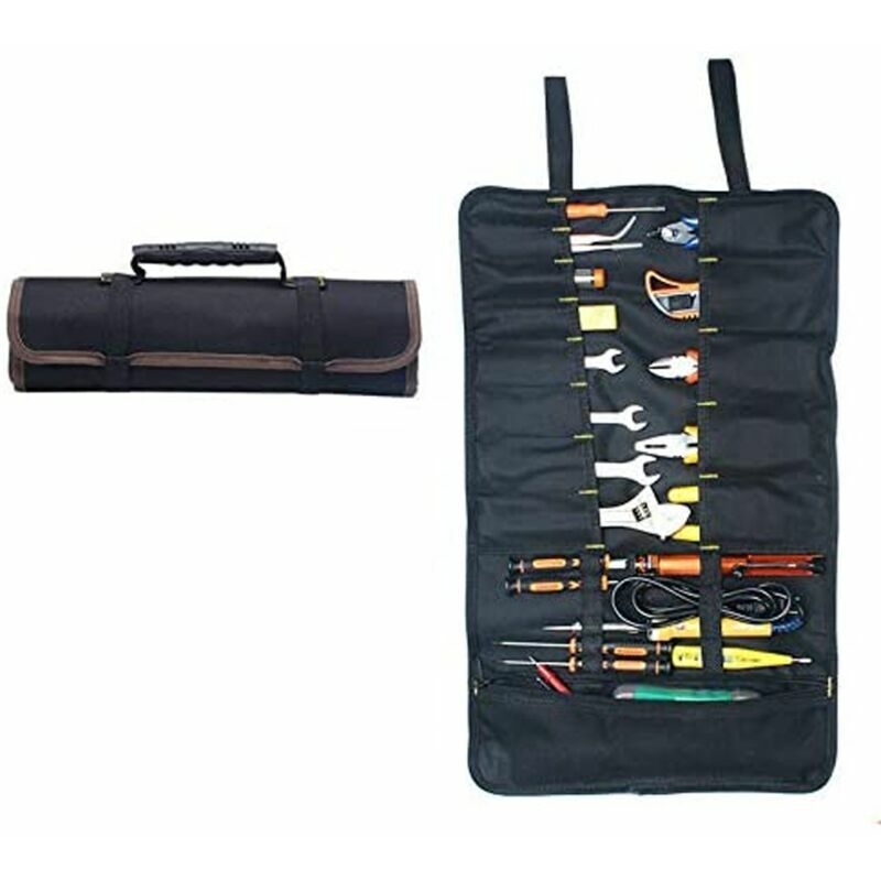 Versatile: tasche capienti che possono contenere una varietà di piccole pinze, cacciaviti, prese, manometro o utensili piatti, senza alcun problema Facile da riporre: si arrotola per riporlo e trasportarlo facilmente;