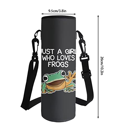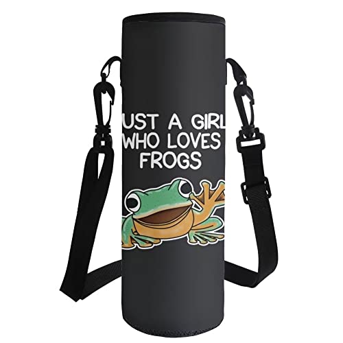 HUGS IDEA Borsa porta bottiglia d'acqua con tracolla regolabile per viaggi, escursioni, sport, Rana dei cartoni animati., L, Borsa organizer