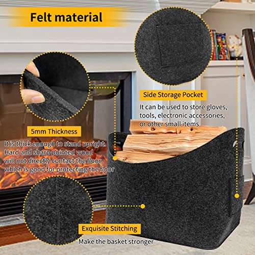 XXL Borsa portalegna per Camino in Feltro Borsa Pieghevole,cestino per legna da ardere,perfetta come borsa per legna da ardere, cestino portaoggetti e grande borsa per la spesa in grigio scuro