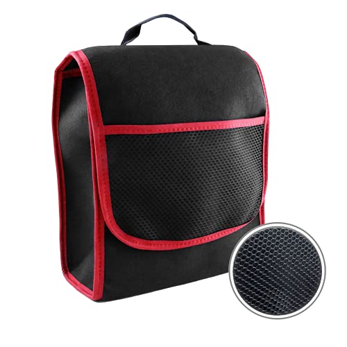 Borsa portaoggetti per bagagliaio dell'auto, piccola borsa organizer per auto, con chiusura in velcro (nero e rosso)