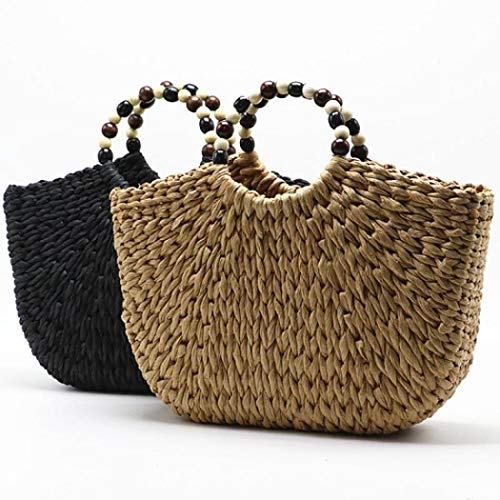 Borsa in rattan intrecciato a mano per le donne a tracolla in paglia bohemien borsa da spiaggia Nero Etichettalia unica