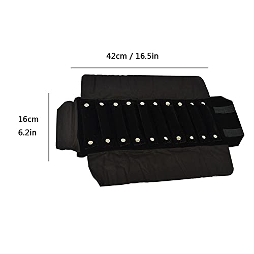 Borsa a Rullo Organizer Gioielli, Flanella Rotolo Pieghevole per Gioielliere Grande capacità e Pratico Portatile,per Anelli, Orecchini,Nero