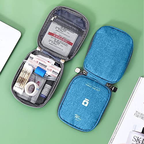 2 Borsa Sacchetti per Medicinali, Portatile Mini Kit Pronto Soccorso, Kit di Pronto Soccorso per Casa, Ufficio, Scuola, Viaggi e Campeggio(Blu)