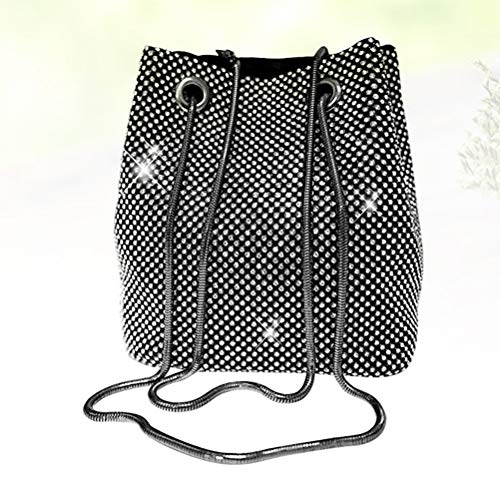 1pc Borsa a secchiello da donna Borsa a tracolla Borsa a pochette con paillettes diamantate per donna Nero