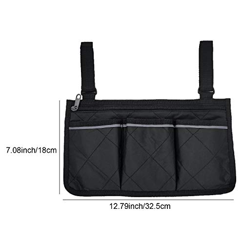 Materiale buono: borsa sedia a rotelle dimensioni: 32,5 x 18 cm, le cinghie sono 12,6 pollici. la borsa per sedia a rotelle è realizzata in tessuto Oxford nero stente e impermeabile, così da essere facile da pulire, La borsa sedia rotell è lavabile in lavatrice.