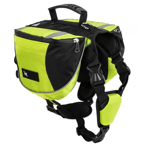Borsa da Sella per Cani Medio e Grande - Zaino Imbracatura per Viaggio Escursionismo Sport all'aperto, Alforja Regolabile Impermeabile Giubbotto Riflettente con Manico (verde, L(cane 28kg - 40kg)