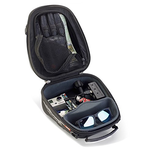 Presa sicura anche alle alte velocità. Nessun contatto della borsa con la vernice della moto. 'Sistema: blocco di sicurezza per proteggere la borsa da serbatoio quando il moto viene lasciato incustodito. Borsa da serbatoio termoformata di alta qualità e resistente ai raggi UV EVA