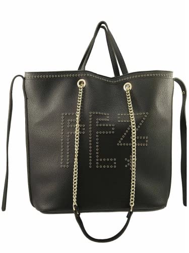 FEZ Borsa Shopper Donna in Ecopelle Logo in Metallo Tracolla Nero, U