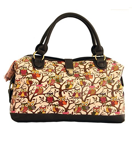 Borsa da spalla con gufi, in tela cerata, da donna