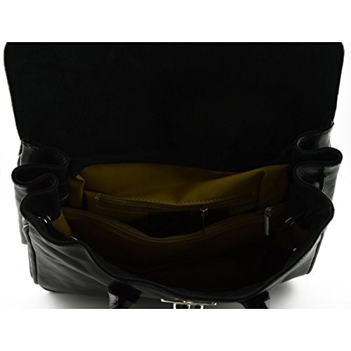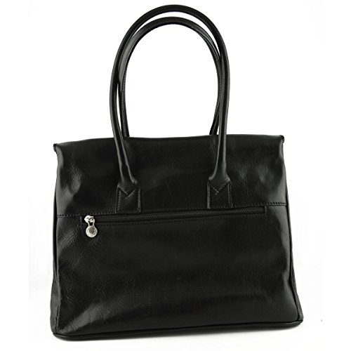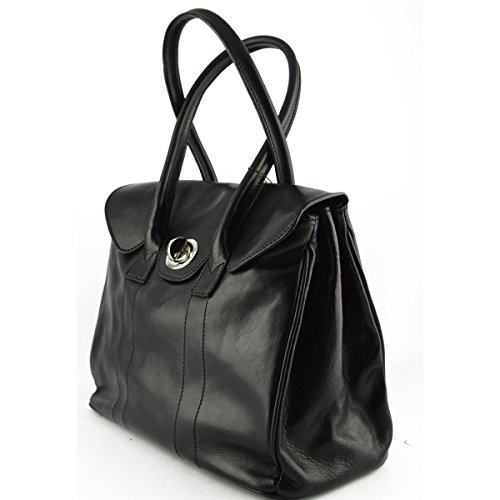 Borsa A Spalla Donna In Vera Pelle Con Bottone Rotatorio Colore Nero - Pelletteria Toscana Made In Italy - Borsa Donna