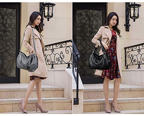 Kris Anna Hobo Borsa a spalla con Tracolla da Donna Ricamo Borse a mano in Pelle PU per Ragazze Adolescenti Signora Grigio