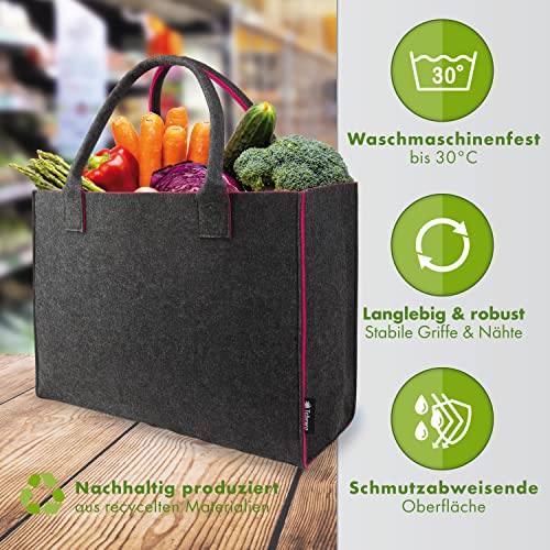 Borsa per la spesa in feltro, grande borsa per la spesa richiudibile con manico, cestino per la spesa, borsa pieghevole per la conservazione di legno, borsa per il trasporto, colore grigio/magenta