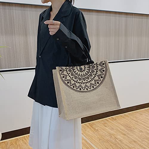 Nv Wang Borsa Juta,Borsa per la Spesa Portatile Borsa per la Spesa in Juta Shopping Tote Bag Riutilizzabile Borsa Mare Spiaggia per il Weekend o la Spiaggia