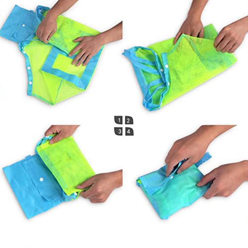 Borsa Rete Spiaggia 2 Pezzi Borsa da Spiaggia Grande Bambini Borsa da Spiaggia Borsa per Giocattoli Borsa di Stoccaggio Pieghevole Verde con Custodia
