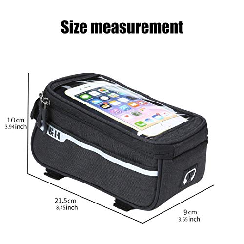 F&H Borsa per Telaio Bicicletta 2.0, per Cellulare, Borsa per Bicicletta, Borsa per Tubo Superiore, Supporto per Cellulare, Impermeabile, Schermo Touch da 6,2 Pollici