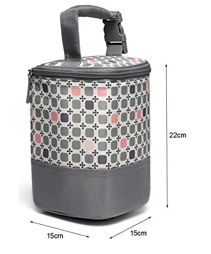 LCY borsa termica per biberon, ideale per la pappa dei bebè, adatta al mantenimento sia del caldo che del freddo, dotata di cinghia, contiene fino a 4 biberon