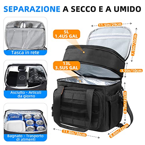 WU Borsa Termica Porta Pranzo 15l 18 Litri Espandibile Impermeabile a Doppio Ponte Separazione a umido e a secco Borse Frigo Termiche Morbido per Ufficio Lavoro all'aperto Acquisti gli sport, Nero