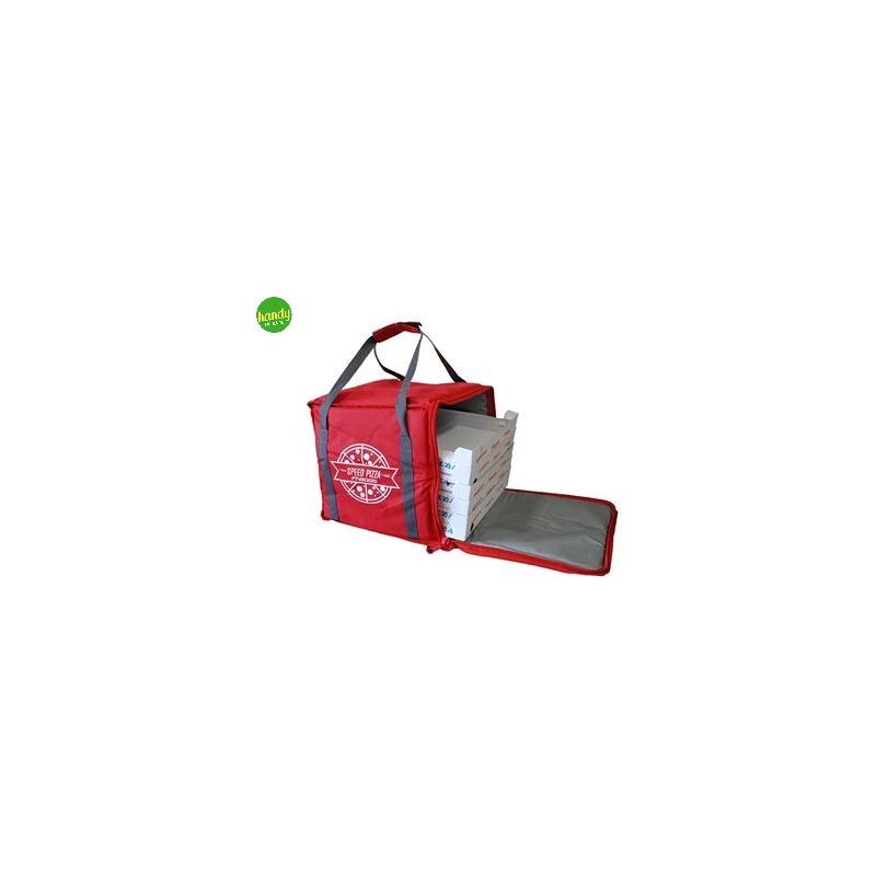 Pratica borsa termica per la consegna a domicilio di pizza. L'interno realizzato con materiali appositi permette di mantenere una temperatura costante che fa sì che la pietanza non si raffreddi alterando il sapore.