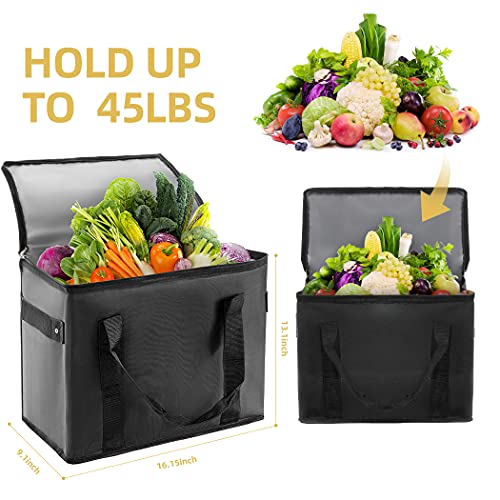 【Maggiore capacità】: include un set di 2 sacchetti. Dimensioni di ciascuno: 16 '' x 13 '' x 9 '', 30 litri, possono contenere fino a 45 ~ 50 libbre, possono contenere frutta, verdura, latte, bevande, pizza, ecc. E la linea a croce a forma di X presenta un buon effetto rinforzante. Il design della raffinata cerniera a doppio cursore è comodo e impedisce la fuoriuscita di cibo durante la guida.