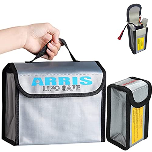 Borsa Lipo,Tiuxiu 2pcs Lipo Safe Bag Resistente Al Fuoco Borsa A Prova Di Esplosione Borsa Sicurezza Grande Capacità Scatola Deposito Batterie Litio Contenitore Protezione 215x155x115 mm,125x64x50mm