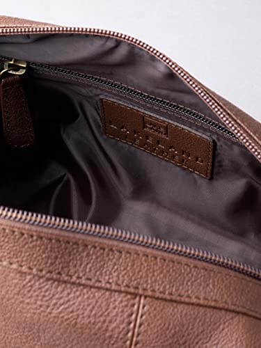 Borsa da toilette in pelle marrone con fodera impermeabile