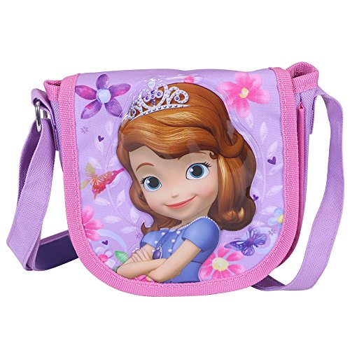 Borsa Tracolla Bambina Sofia La Principessa - Pratica borsetta messenger con patella frontale - Tracollina regolabile da viaggio e tempo libero - Rosa e Viola - 17x16x4cm - Perletti