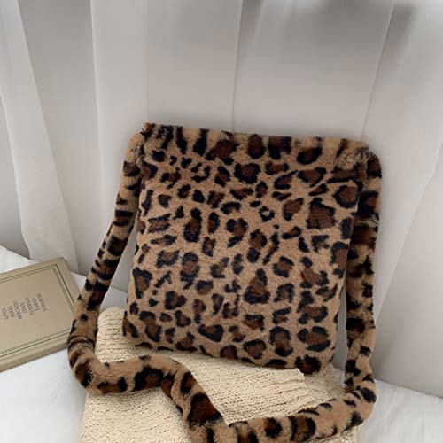 Borsa a Tracolla Casual Morbida in Peluche Borse a Tracolla con Stampa Leopardata Retrò Borsa a Tracolla Modello Leopardato Borsa a Tracolla da Donna Soffice per Abbigliamento Autunno Inverno Uso
