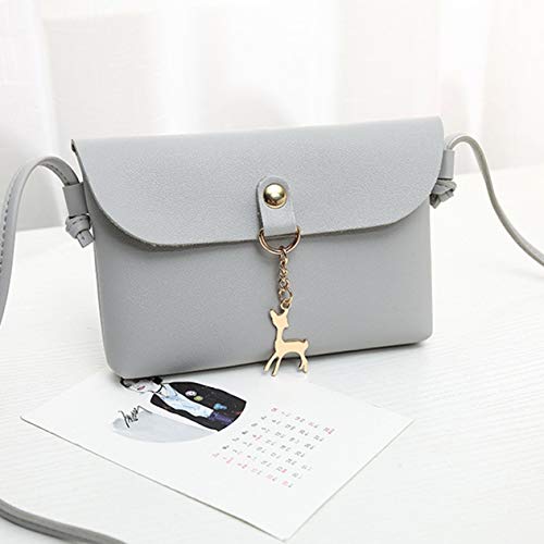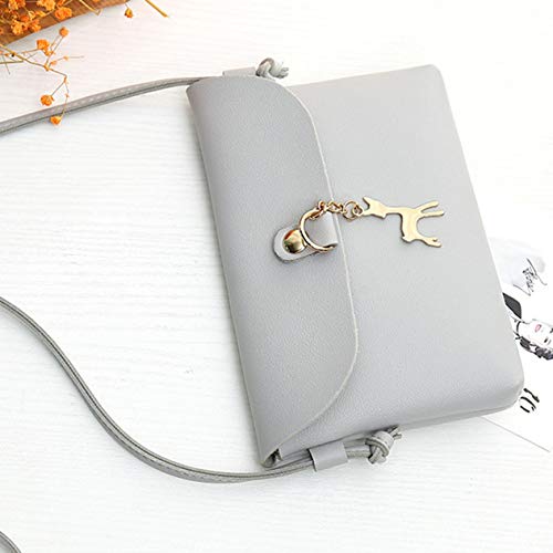 Borsa a Tracolla con Ciondolo Cervo Stile Semplice Borsa a Tracolla Borsa in Pelle PU Borsa Piccola con Patta Donna Piccola Pochette Borsa per Cellulare-Grigio Chiaro BCVBFGCXVB