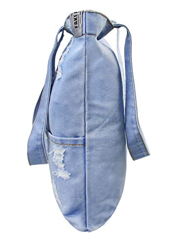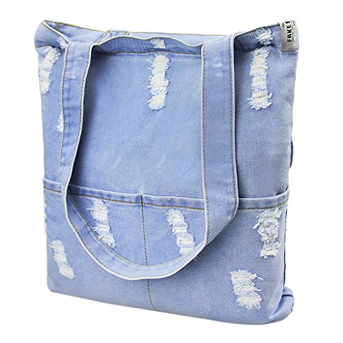Borsa a tracolla da donna, in tela, con motivo a fori, azzurro e blu scuro, #4 (Blu) - FEM-BAG-000125-BC-DE
