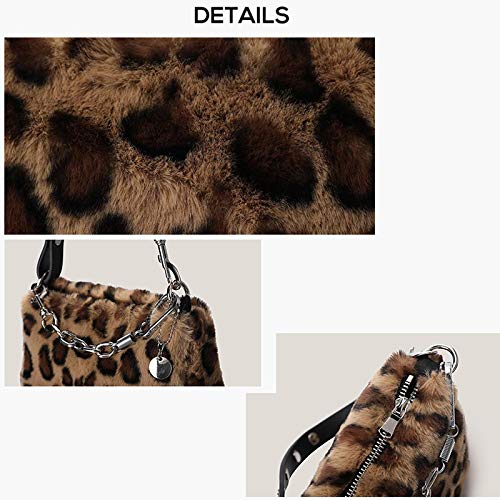 Borsa a tracolla da donna, in peluche, con stampa pelosa, per ragazze, donne, Natale, inverno, decorazione regalo (nero), Leopard, Large