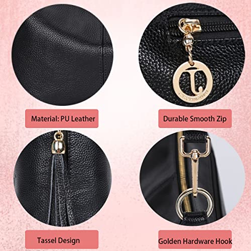 Borsa a tracolla da donna, piccola borsa a tracolla con manico superiore, borsa a tracolla in pelle per donna e donna, con molte tasche con cerniera per shopping, fine settimana vacanze, colore nero
