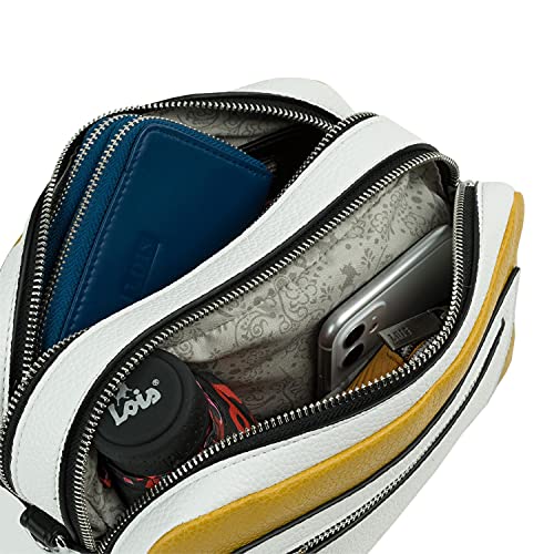 Lois - Borsa a tracolla per donna con due striscie intercambiabili. Design minimalista elegante moderno funzionale e vesatile 307183, Senape-Bianco
