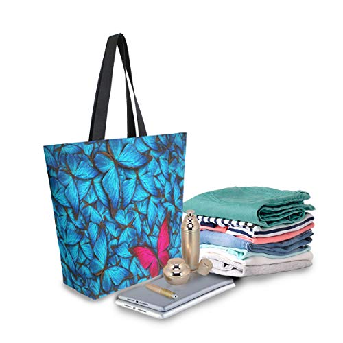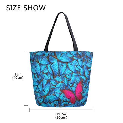 RXYY - Borsa a tracolla in tela con motivo a farfalle, colore: rosa e blu, resistente, da donna, stile casual, riutilizzabile, per la spesa, per viaggi all'aperto