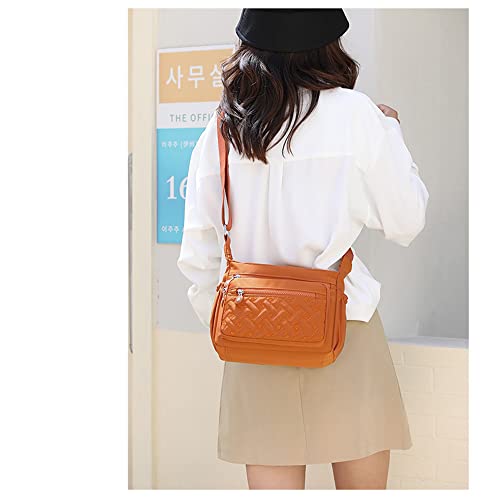 Borsa a tracolla multi tasca da donna, borsa a tracolla con tracolla larga regolabile, borsa in nylon morbida di grande capacità per lo shopping, viaggi e lavoro, Arancione scuro., Taglia unica