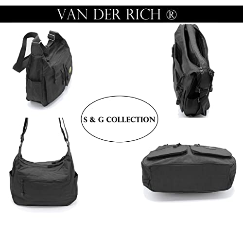 Van Der Rich ® - Borsa a tracolla, Borsa multiuso, Ultra leggera - Donna (Nero)