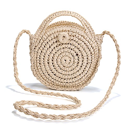 Borsa a Tracolla in Paglia, JOSEKO Donne Borsa a Spalla Tessuta Spiaggia Estiva Borsa per Viaggio Uso Quotidiano (Beige#02)