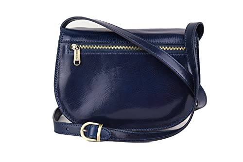 Borsa Tracolla Pattina Lunga Tre Scomparti Vera Pelle Italiana Tamponata a Mano Prodotto Fabbricato in Italia Chiusura Pattina e Calamita Artigiani Toscani Marchio I FRATELLI Art.5512 (BLU)