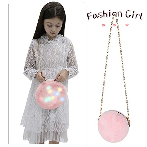 Borsa a tracolla in pelliccia a LED, per bambini, con chiusura a tracolla, in peluche, ideale per donne e ragazze, rosa, Taglia Unica