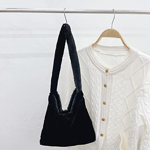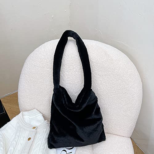 Borsa a tracolla in peluche da donna, morbida borsa a mano per bambini, con orsetto animale, in peluche, per l'autunno e l'inverno., Nero,