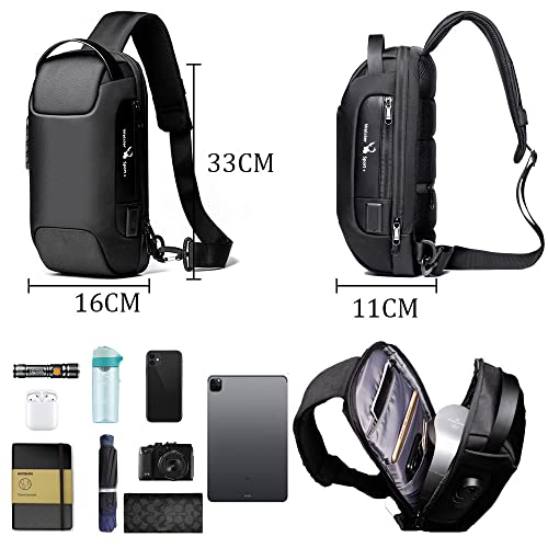 GKE Borsa a Tracolla, Borsa Pettorale da Uomo Antifurto USB Con Blocco Password Antifurto, Borse a Spalla Casual Borsa Pettorale in Tessuto Oxford Impermeabile Army Green