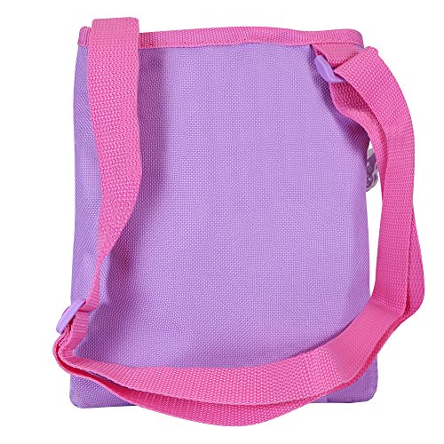Borsa Tracolla Piatta Rosa Sofia La Principessa da Bambina - Pratica Tracollina Messenger con Farfalle e Fiori su Sfondo Viola - Borsetta Regolabile da Viaggio e Tempo Libero - 17x21 cm - Perletti