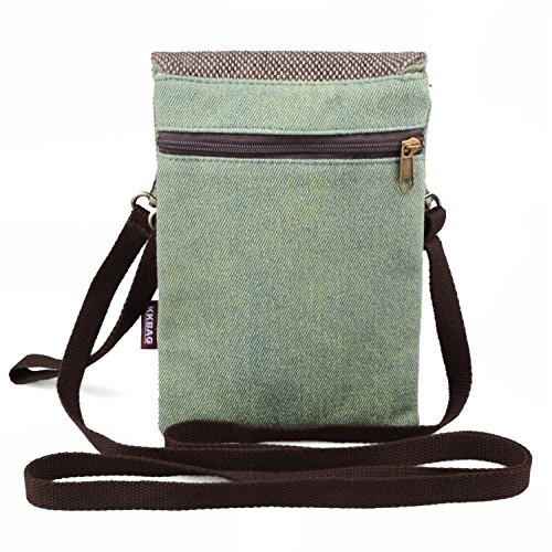 Borsa a Tracolla Piccolo Borsetta in Tela per Telefono Cellulare Braccialetto Pochette Borsello Ragazze Sacchetto Marsupio Tasca con Cerniera + Portachiavi (Verde)