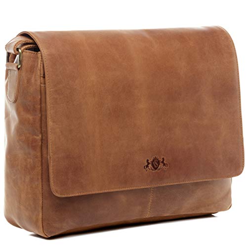 SID & VAIN Borsa tracolla porta pc vera pelle SPENCER grande I Messenger portadocumenti Università Ufficio Lavoro Business uomo donna I cartella per laptop computer portatile marrone chiaro
