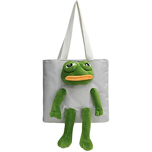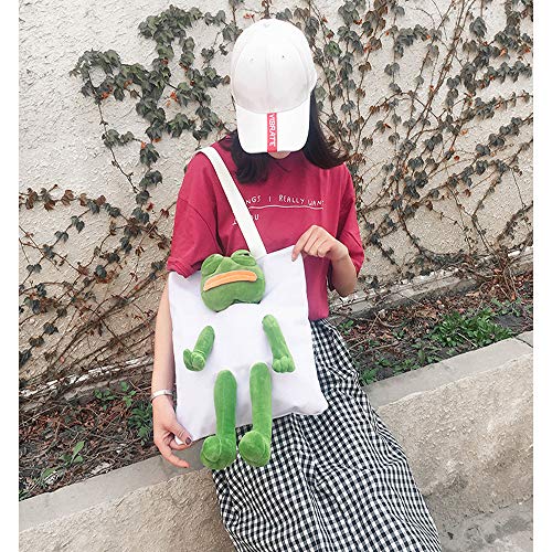 Borsa a tracolla Borsa a tracolla Satchel Zaino con Rana Peluche Bambola Decor Canvas Borsa quotidiana per Casual Viaggi Shopping, bianco, Taglia unica