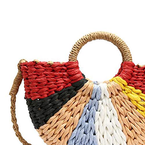 Borsa a tracolla in tessuto colorato intrecciato in paglia Borsa da spiaggia estiva multifunzionale Borsa alla moda di grande capacità Borsa a tracolla in paglia artigianale per ragazze (taglie)