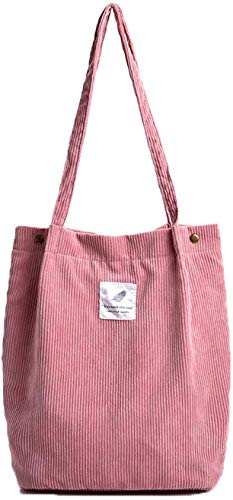 Borsa a Tracolla in Velluto a Coste,Donna Tote Bag Retro Casual Handbags,Fashion Women's Shoulder Handbags Big Capacity Shopping Bag (Rosa