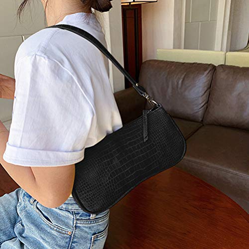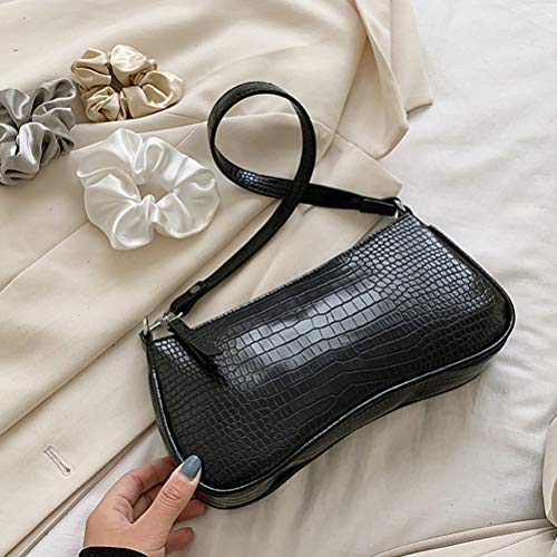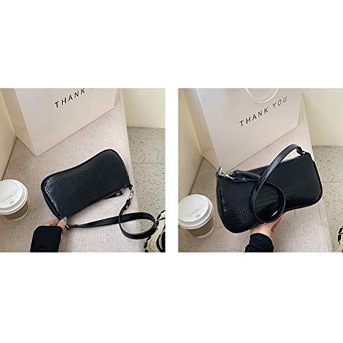 Borsa a tracolla vintage da donna, stampa coccodrillo, in ecopelle effetto retrò, nero