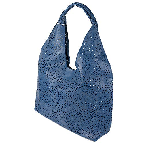Borsa traforata blu da donna ragazza shopping bag hobo grande con tracolla capiente a spalla giornaliera tutti i giorni lavoro ufficio viaggio moda primavera estate 2023 primaverile estiva Blu