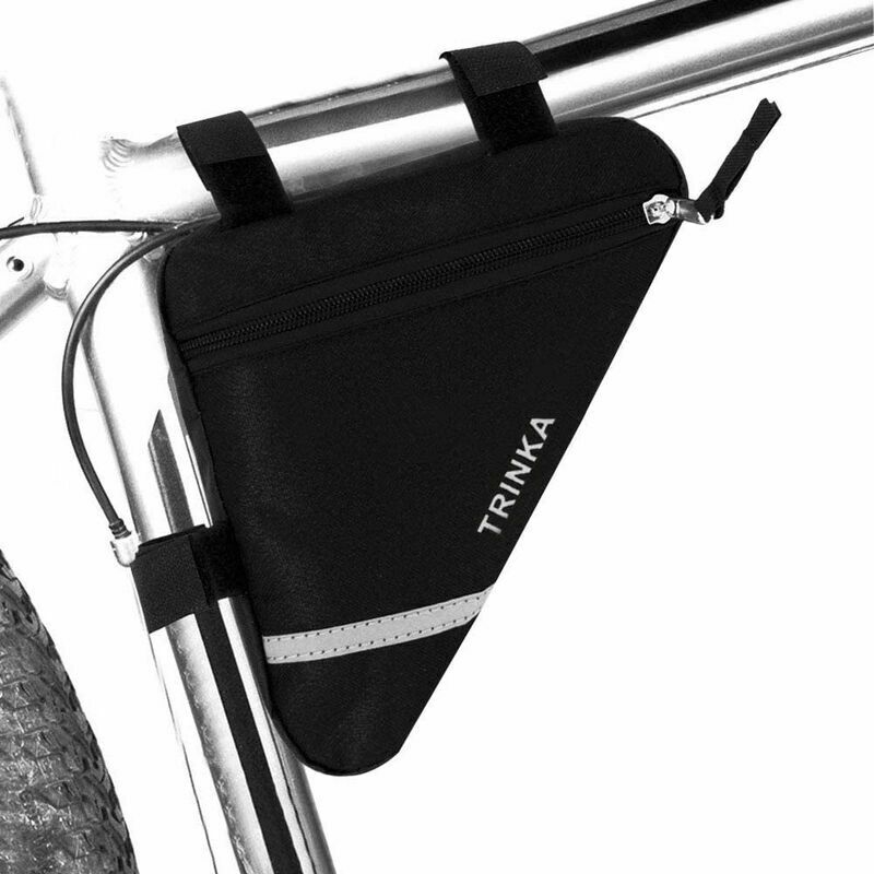 Realizzato in tessuto di nylon 600D impermeabile e resistente all'usura, più robusto e durevole. Con il design delle cinghie con bottoni in nylon, si collega facilmente sotto il tubo superiore della bicicletta. Design con cerniera sul lato destro della natura umana, cercalo più comodo. Ampie strisce riflettenti su entrambi i lati assicurano una guida notturna sicura. Grande capacità, ideale per riporre piccoli oggetti, come cuffie, cellulare, portafoglio, chiavi, strumenti, leve per pneumatici, kit di riparazione, snack e altro ancora.
