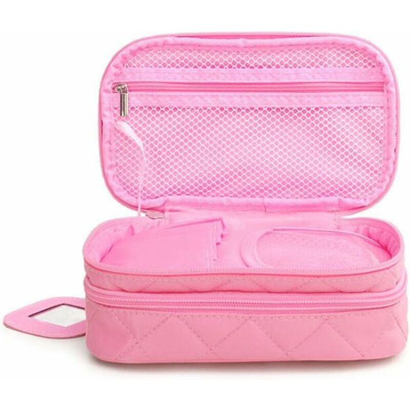 STRUTTURA A DOPPIO STRATO: Il primo strato della borsa per il trucco è progettato con un'ampia tasca a rete, un piccolo specchio e 4 porta trucchi. Secondo strato con ampio spazio di archiviazione e una tasca a rete. Scomparti multipli per diverse esigenze di archiviazione. Tasca in rete per riporre cosmetici piccoli e piatti. ?? ALTA QUALITÀ: il tessuto in nylon resistente all'acqua protegge i tuoi effetti personali dall'ingresso di umidità o batteri. Le cuciture pulite e fini assicurano che le borse siano stabili e resistenti. La cerniera morbida di alta qualità offre le migliori esperienze utente. ?? DIMENSIONE MEDIA: 7,87 x 4,72 x 3,15 (20 x 12 x 8 cm). Spazio sufficiente per crema per il viso, articoli per l'igiene personale, accessori per capelli, profumi, strumenti per le labbra e trucco e articoli da viaggio. ??Multi- funzione: questa custodia non può essere utilizzata solo come borsa per cosmetici, ma può anche essere utilizzata come fotocamera digitale, cavo dati